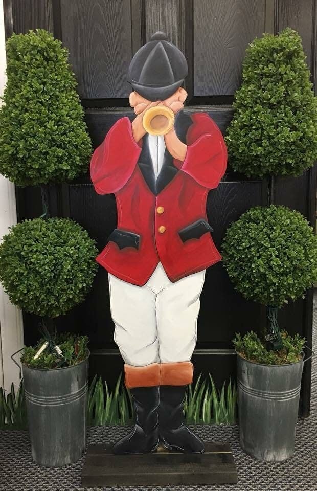 Think vibrant red roses, lush green grass, and classic equestrian touches.