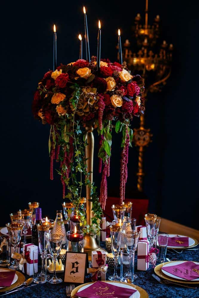 Gothic florals help transform any venue into a space that feels magical and otherworldly, giving your wedding a cinematic quality that’s absolutely breathtaking.