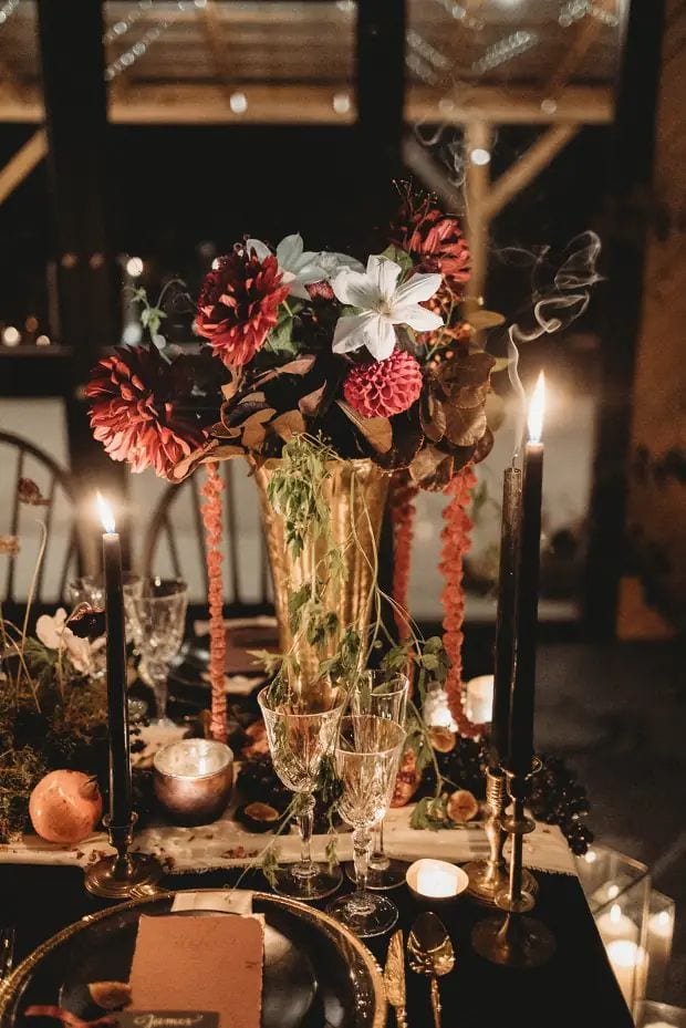 Gothic wedding florals make an immediate statement that guests will remember long after your celebration ends.