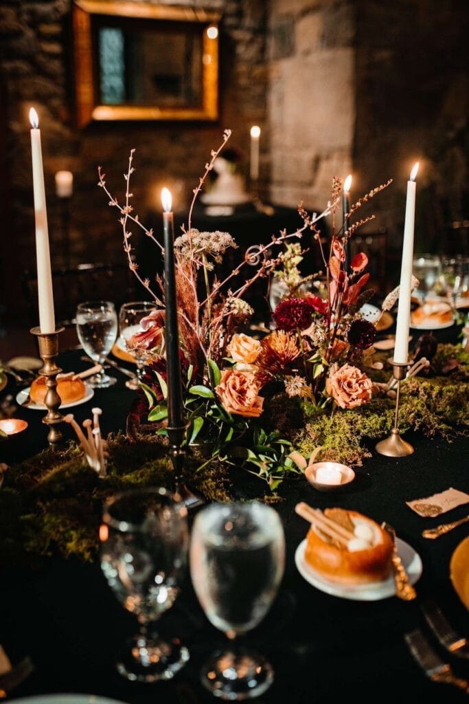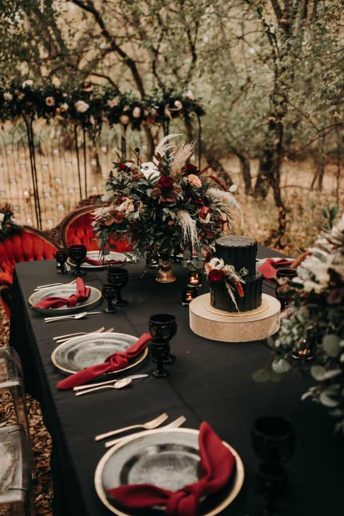 Gothic wedding table settings excel at creating an atmosphere that’s both intimate and grand.